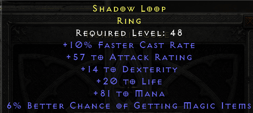 Shadow Loop - 10 FCR 14 Dex 20 Life 81 Mana - Non Ladder